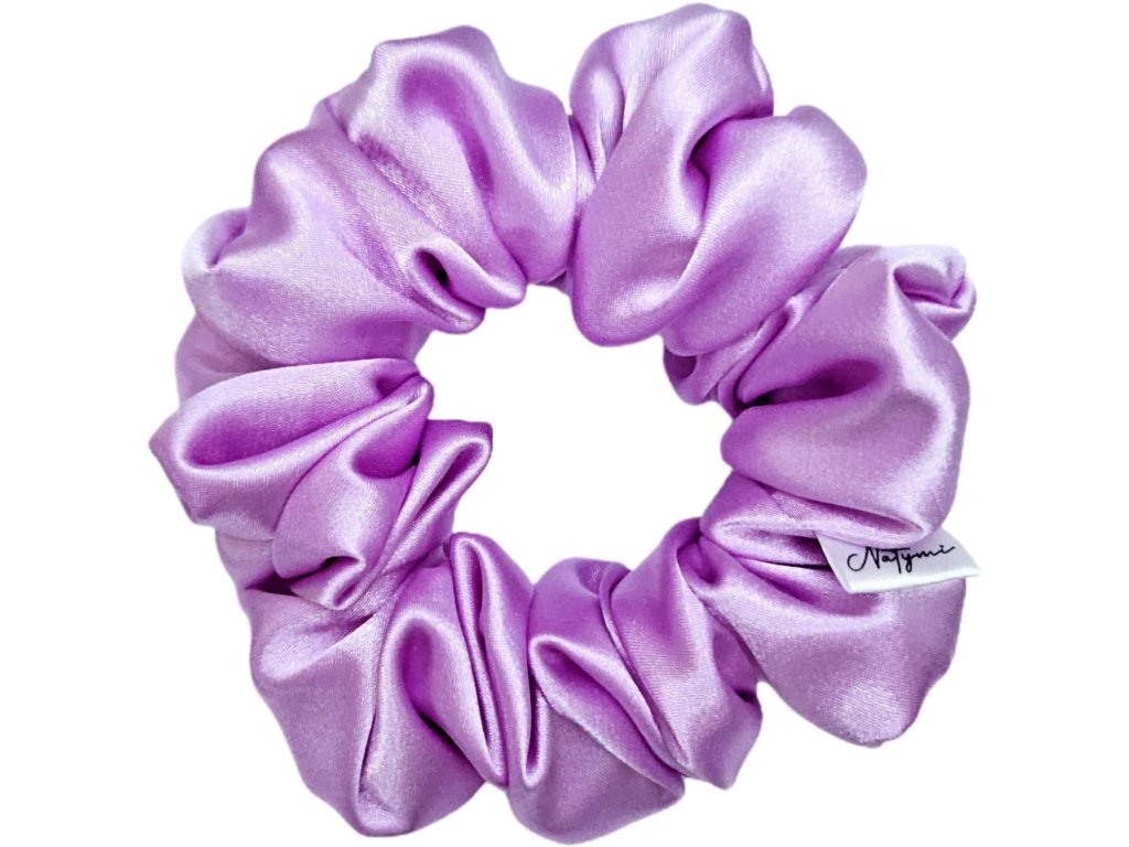 Široká saténová scrunchie v něžné růžové barvě je elegantní a praktický doplněk, který dodá účesu objem a jemný ženský nádech.