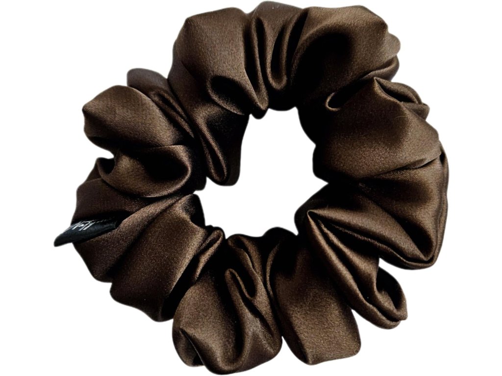 Proč si vybrat tmavě hnědou saténovou scrunchie?